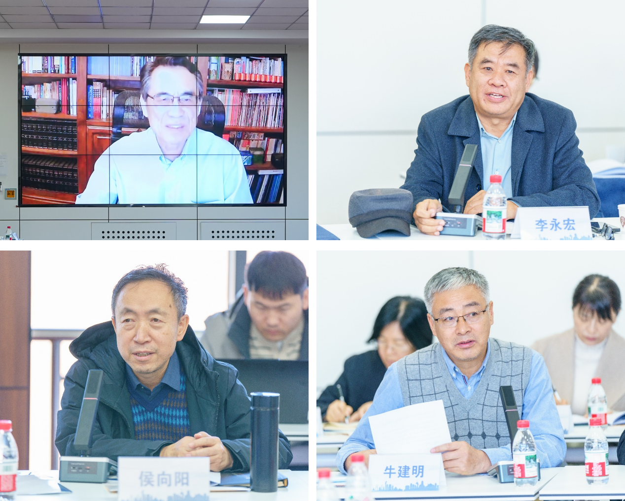 李博先生的学生发言:(左1)美国亚利桑那州立大学教授邬建国(左2)山西农业大学教授侯向阳(右1)内蒙古大学教授李永宏(右2)内蒙古大学教授牛建明